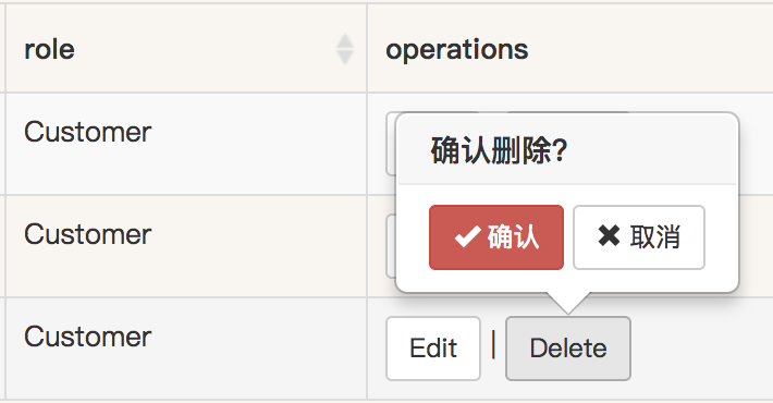 bootstrap-table中可以通过一个格式化函数返回某行某列的值,这里为了实现弹出的确认,使用了 bootstrap-confirmation。该空间提供了一系列属性值,可以根据需要设置,如:
